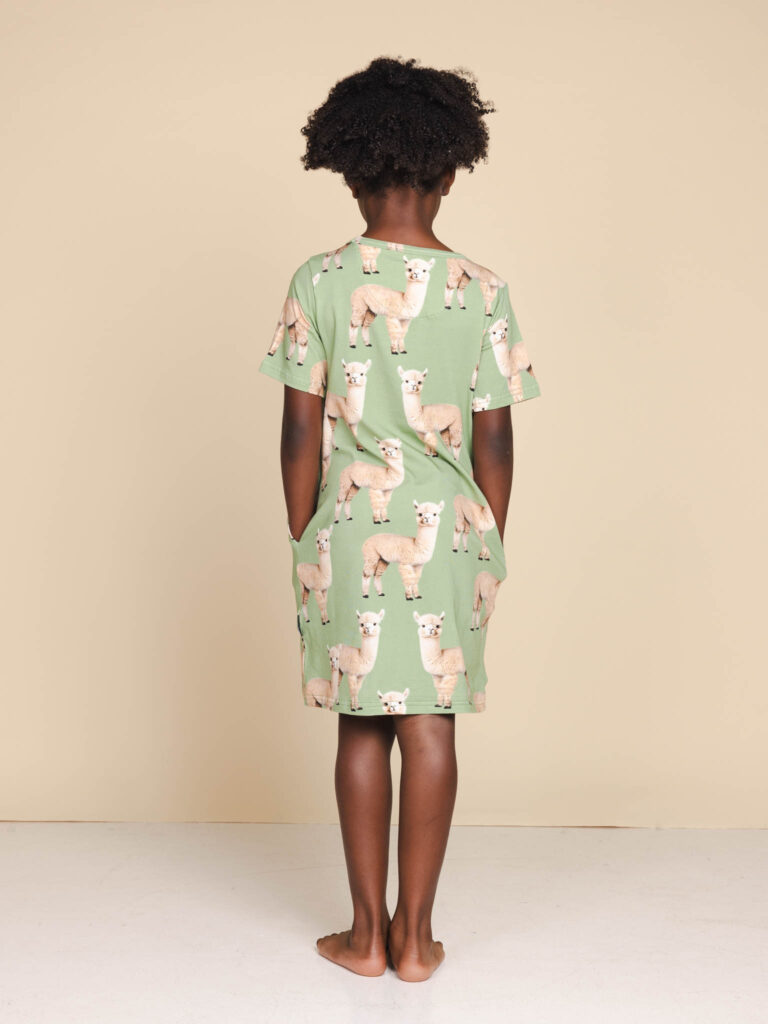 Dromen was nog nooit zo zacht. Onze alpacaprint op fris groen brengt instant rust, met deze lieve alpaca’s die met je mee loungen. Gemaakt van biologisch katoen dat bijna net zo zacht voelt als hun vacht. Aaien mag!