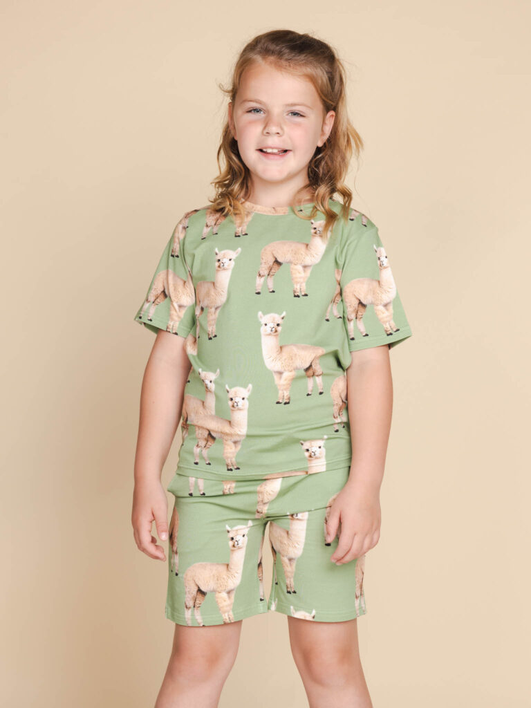 Dromen was nog nooit zo zacht. Onze alpacaprint op fris groen brengt instant rust, met deze lieve alpaca’s die met je mee loungen. Gemaakt van biologisch katoen dat bijna net zo zacht voelt als hun vacht. Aaien mag!