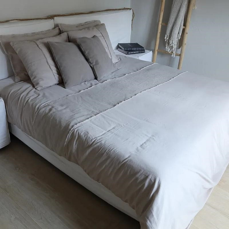 Dekbedovertrek Arezzo is het beste van twee werelden! Het is een heerlijk zacht dekbedovertrek van katoen satijn en heeft zowel op het dekbedovertrek als op het kussen een brede linnen band die beide zijn afgewerkt met een froezel randje.