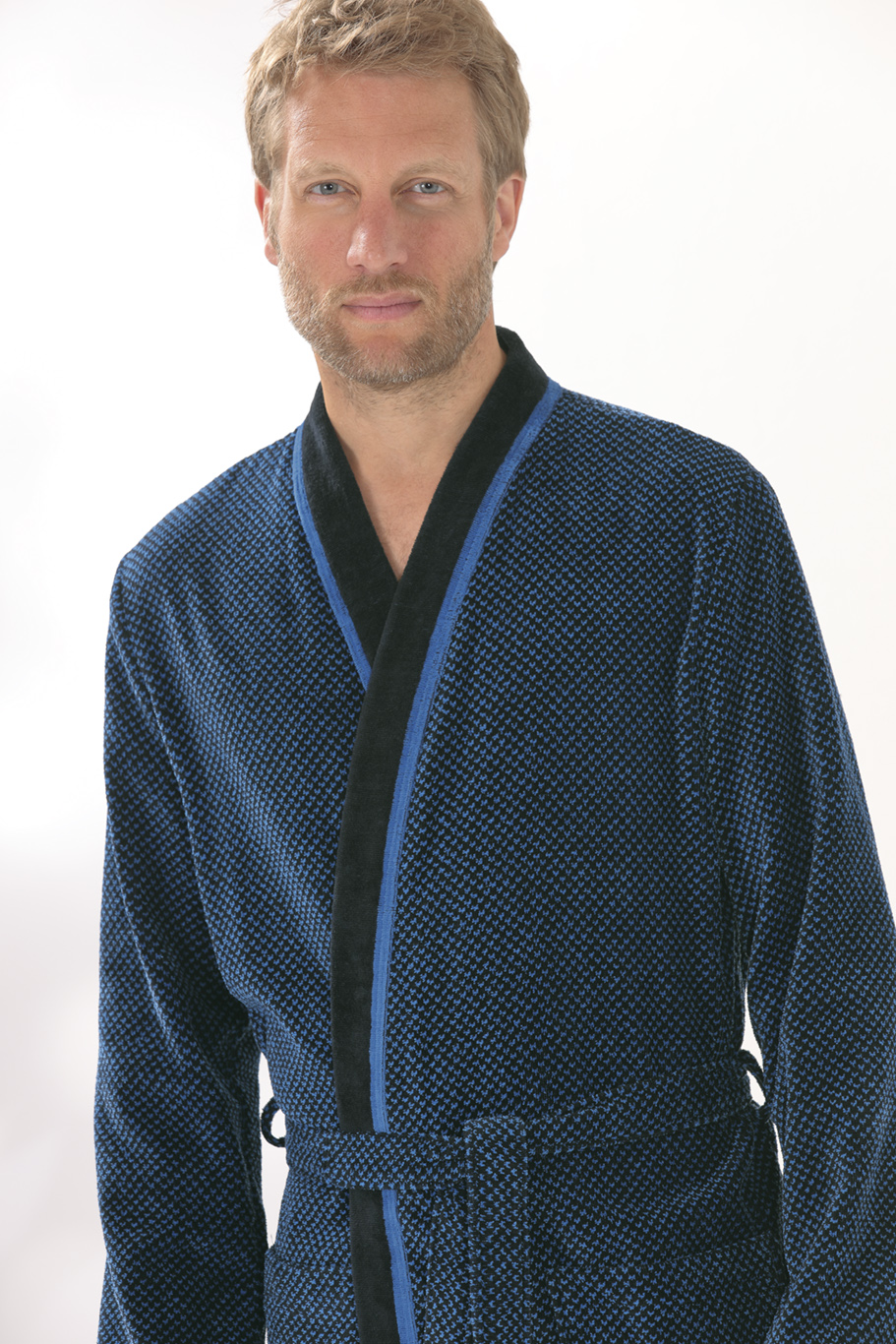 Mooie klassieke heren badjas , met aan de buitenkant een zachte velours kwaliteit.