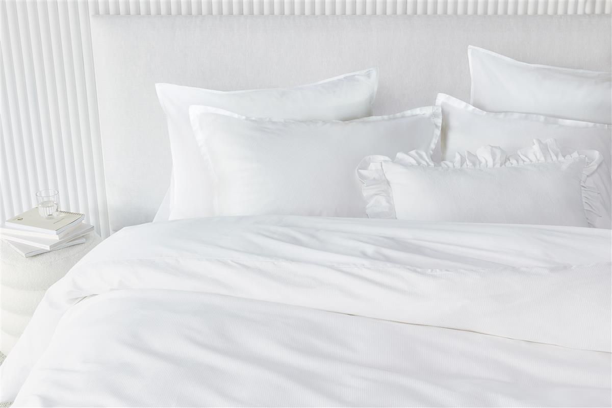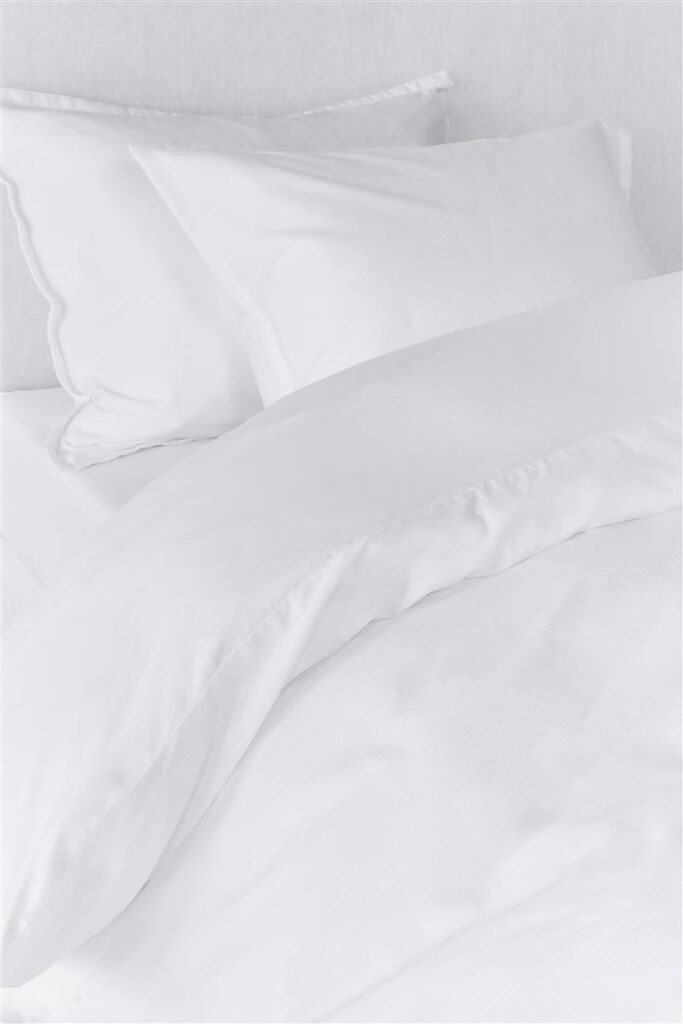 Het dekbedovertrek Blanca heeft een fijn geometrisch patroon aan de voorzijde en een chique glans door de satijnweving. Door de dobby weving aan de voorkant van het overtrek, heeft het witte overtrek een mooie fijne structuur. De kussenslopen hebben dezelfde structuur en zijn afgewerkt met een sierlijke oxford rand. Duurzaam ontwikkeld Bedding House streeft ernaar de impact op het milieu te verminderen, zodat iedereen met een gerust gevoel kan slapen. Om dit dekbedovertrek een prachtige sneeuwwitte kleur te geven is het overtrek gebleekt in plaats van geverfd. Hierdoor is er veel minder water (45%), gas (7%) en elektriciteit (48%) nodig tijdens het productieproces.