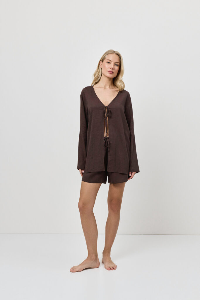 De set bestaat uit een luchtige top en bijpassende shorts, ideaal voor een dagje strand, een wandeling langs de boulevard of een relaxte middag bij het zwembad. De hoogwaardige materialen en verfijnde afwerking zorgen voor een luxueuze uitstraling en een heerlijke pasvorm.