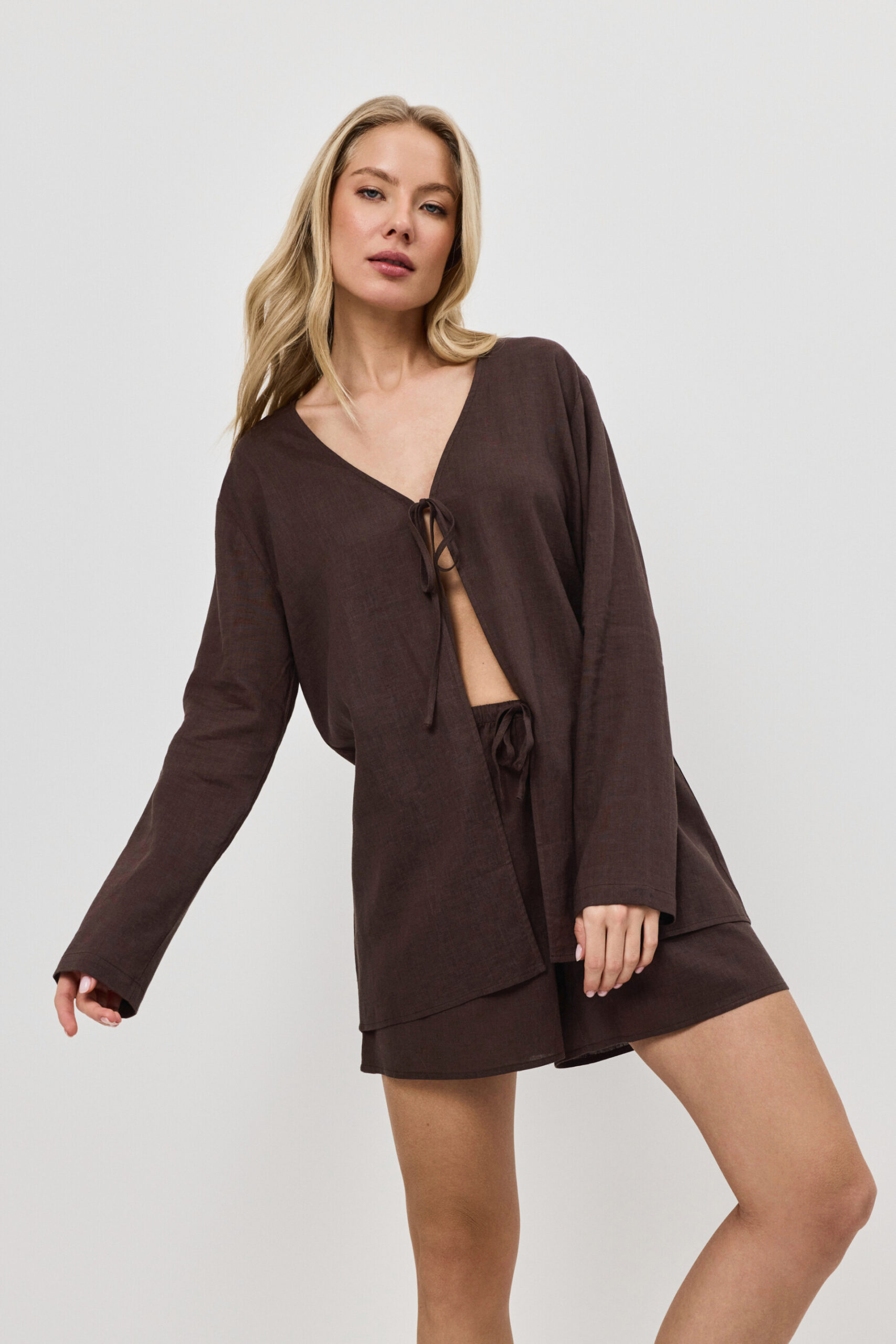 Maak je zomerse garderobe compleet met de stijlvolle Clay Set Top + Short van het gerenommeerde merk Aruelle. Deze luxe resortwear is ontworpen voor ultiem comfort en moeiteloze elegantie, perfect voor zonnige dagen en ontspannen avonden.