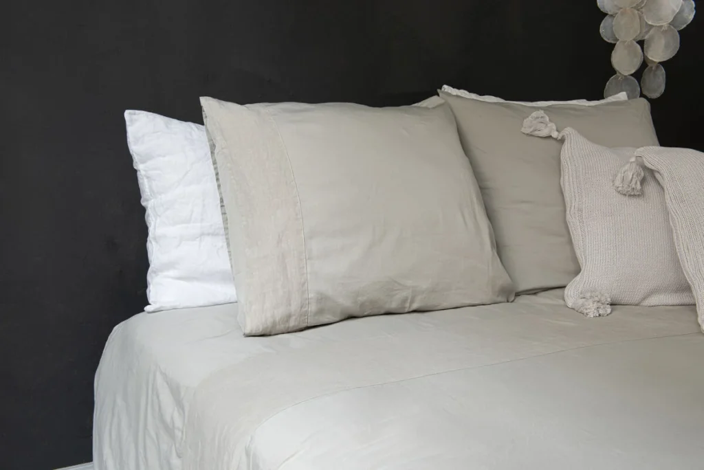 Onder het ongelofelijk zachte katoen satijnen Como dekbedovertrek word je uitgerust wakker. Aan de bovenkant zorgt de brede stonewashed linnen strook voor een natuurlijke touch.