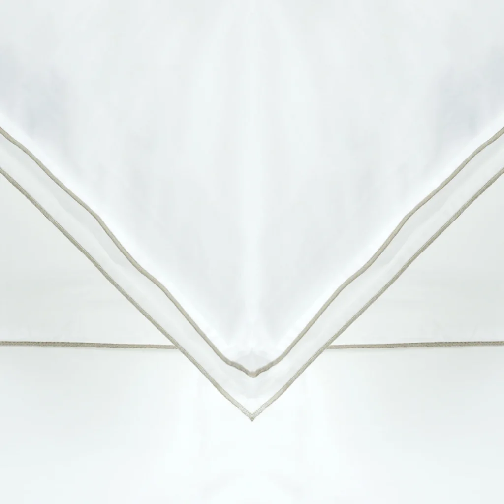 Rimini dekbedovertrek is gemaakt van 100% katoen satijn. Het dekbedovertrek en de bijbehorende kussenslopen zijn subtiel afgewerkt met een contrasterende geborduurde rand.