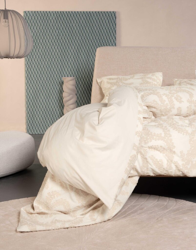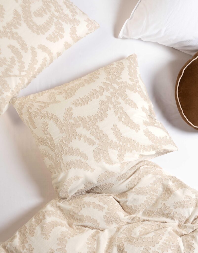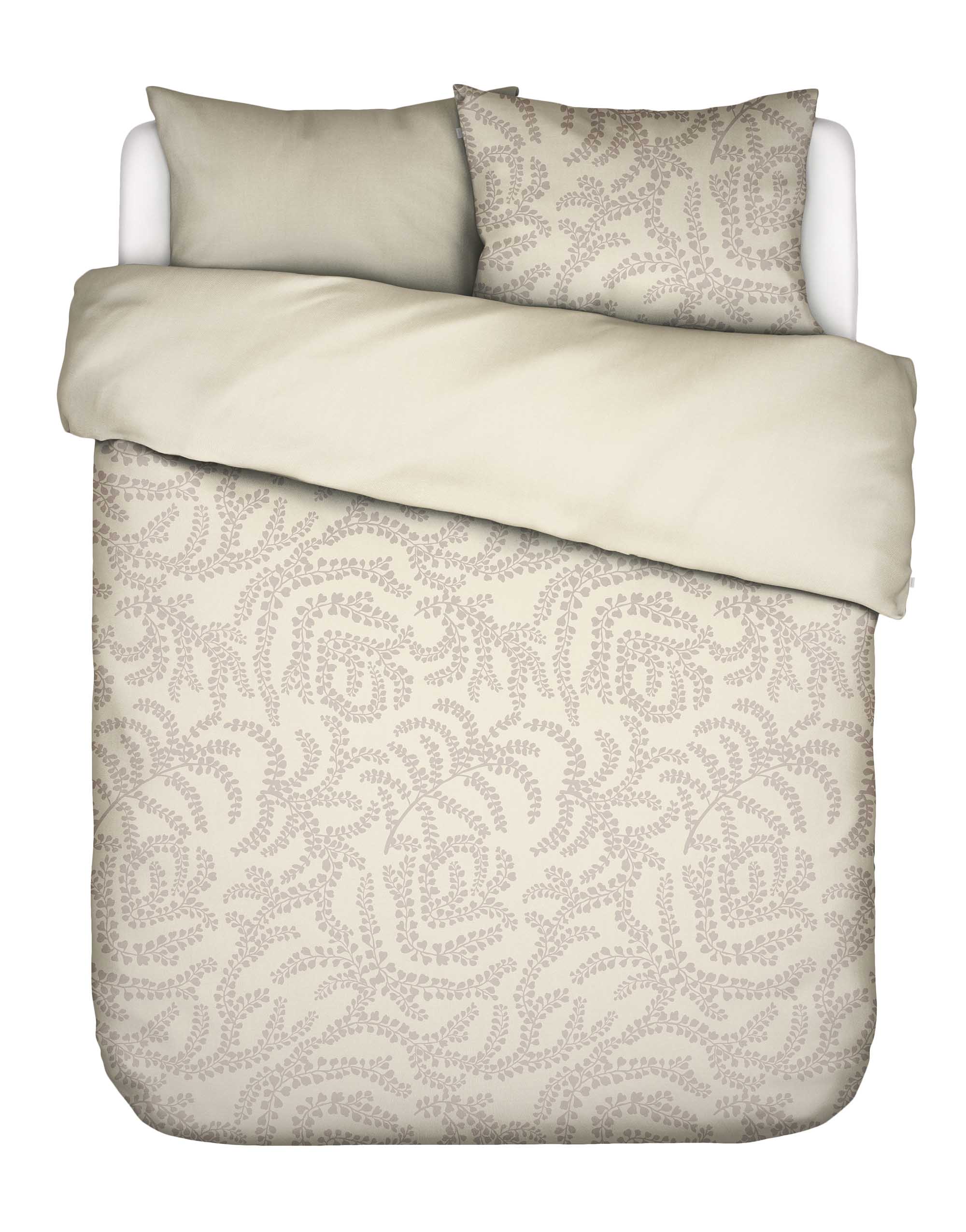 Dit Essenza dekbedovertrek Eleria in de kleur Oatmeal brengt structuur en rust samen in een verfijnd ontwerp. Het dessin laat een ritmisch patroon van sierlijk slingerende blaadjes zien. De print oogt levendig maar blijft ingetogen, waardoor je slaapkamer een natuurlijke en gebalanceerde uitstraling krijgt.