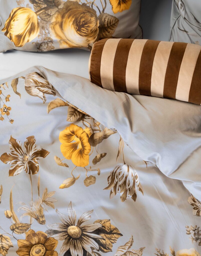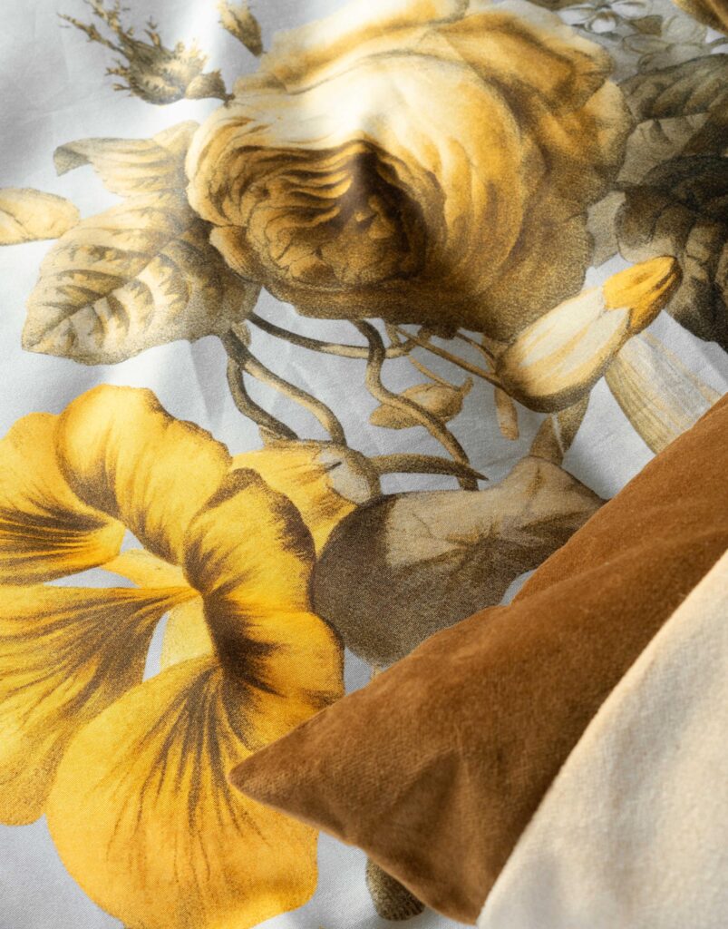 Het Essenza dekbedovertrek Florean in Grey is een zacht grijs dekbedovertrek uitgevoerd met een verfijnd two-tone bloemendessin dat lentefrisheid en ingetogen elegantie combineert. Dit bijzondere dessin is samengesteld uit bloemen afkomstig uit zes verschillende kunstwerken uit het Rijksmuseumarchief. In een luchtige, dynamische compositie komen onder andere sering, kamperfoelie, Oost-Indische kers, rozen en diverse tulpen tot leven. De rustige, tweekleurige opbouw geeft elk bloemblaadje en elke stengel ruimte om te schitteren.