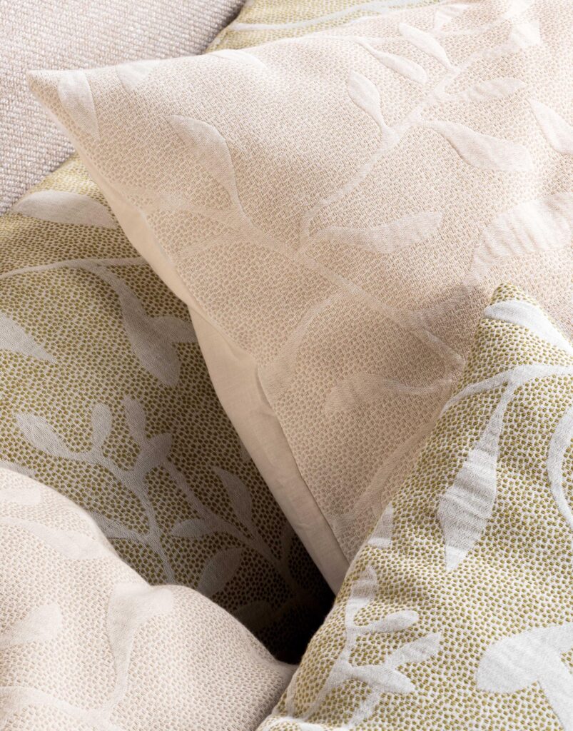 Essenza dekbedovertrek Willow is een zacht en natuurlijk dessin waarin sierlijke takjes en fijne bladeren over het oppervlak bewegen. De subtiele tekening doet denken aan licht dat door bladerdek speelt, waardoor het dekbedovertrek een rustige, elegante uitstraling krijgt die prachtig past in een serene slaapkamer.