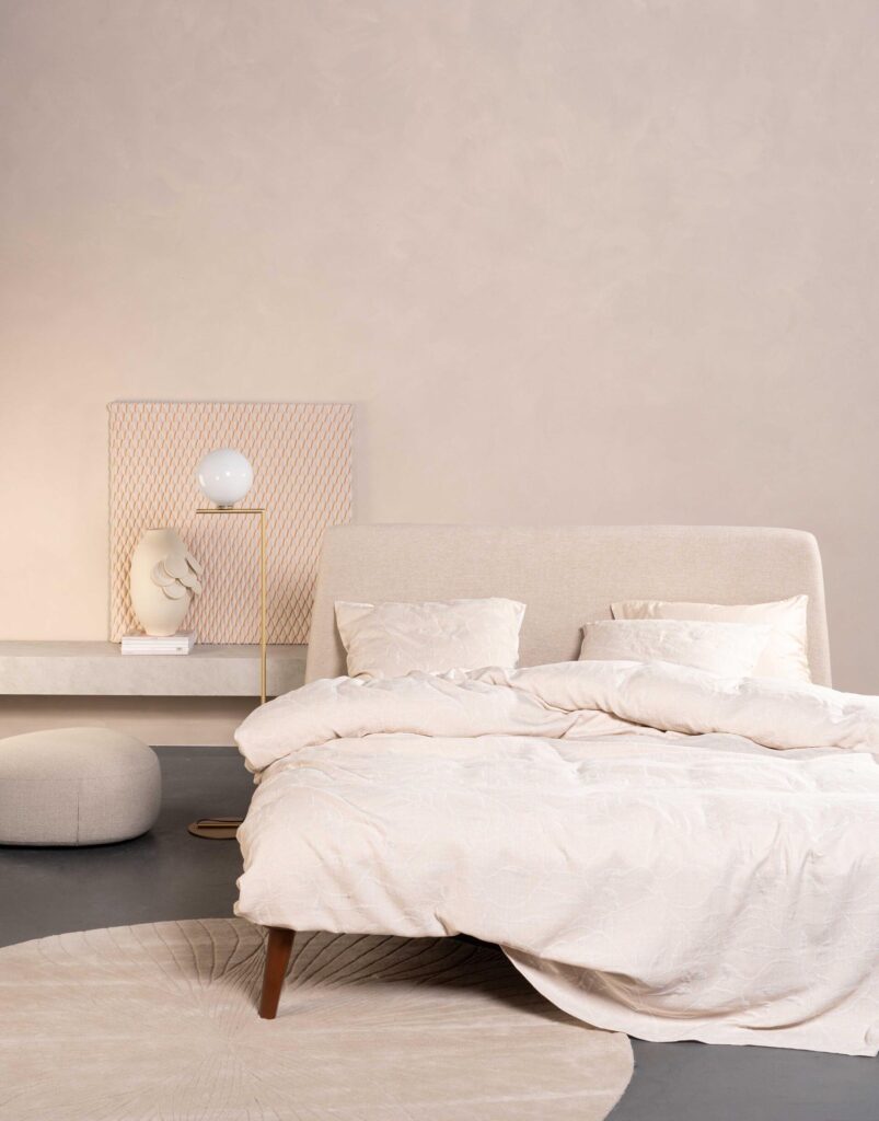 Deze uitvoering in de kleur Vanilla is uitgevoerd in een zachte, beige tint die het organische lijnenspel een warme en vriendelijke uitstraling geeft. Het overtrek is gemaakt van 100% katoen: een natuurlijk materiaal dat zacht aanvoelt, goed ademt en comfortabel slaapt in elk seizoen. Dankzij de prettige kwaliteit blijft de stof bovendien lang mooi.