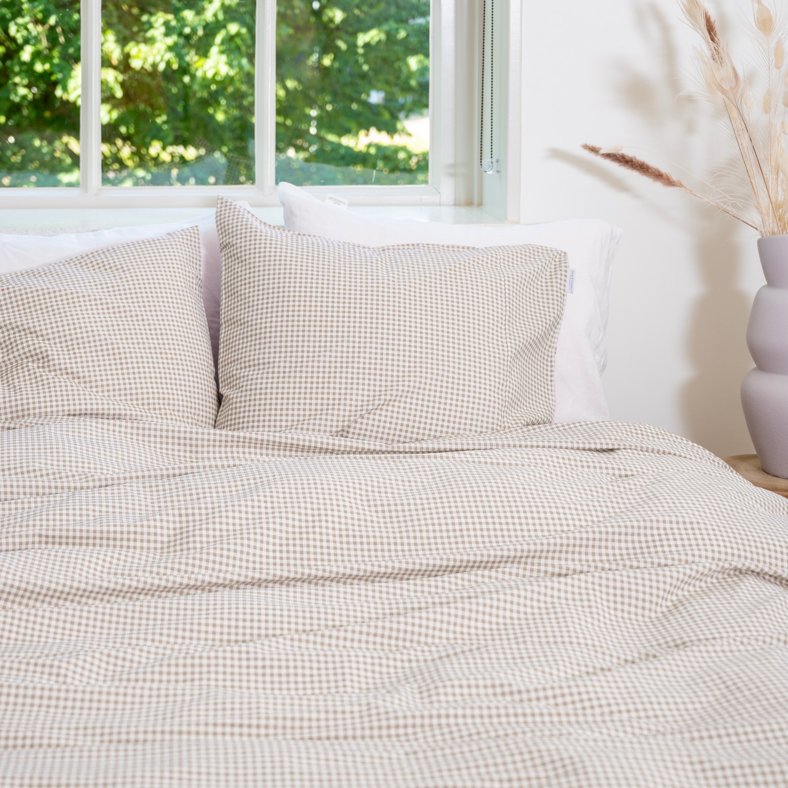 Deze gingham ruitjes zijn goed te combineren met diverse plaids en spreien.