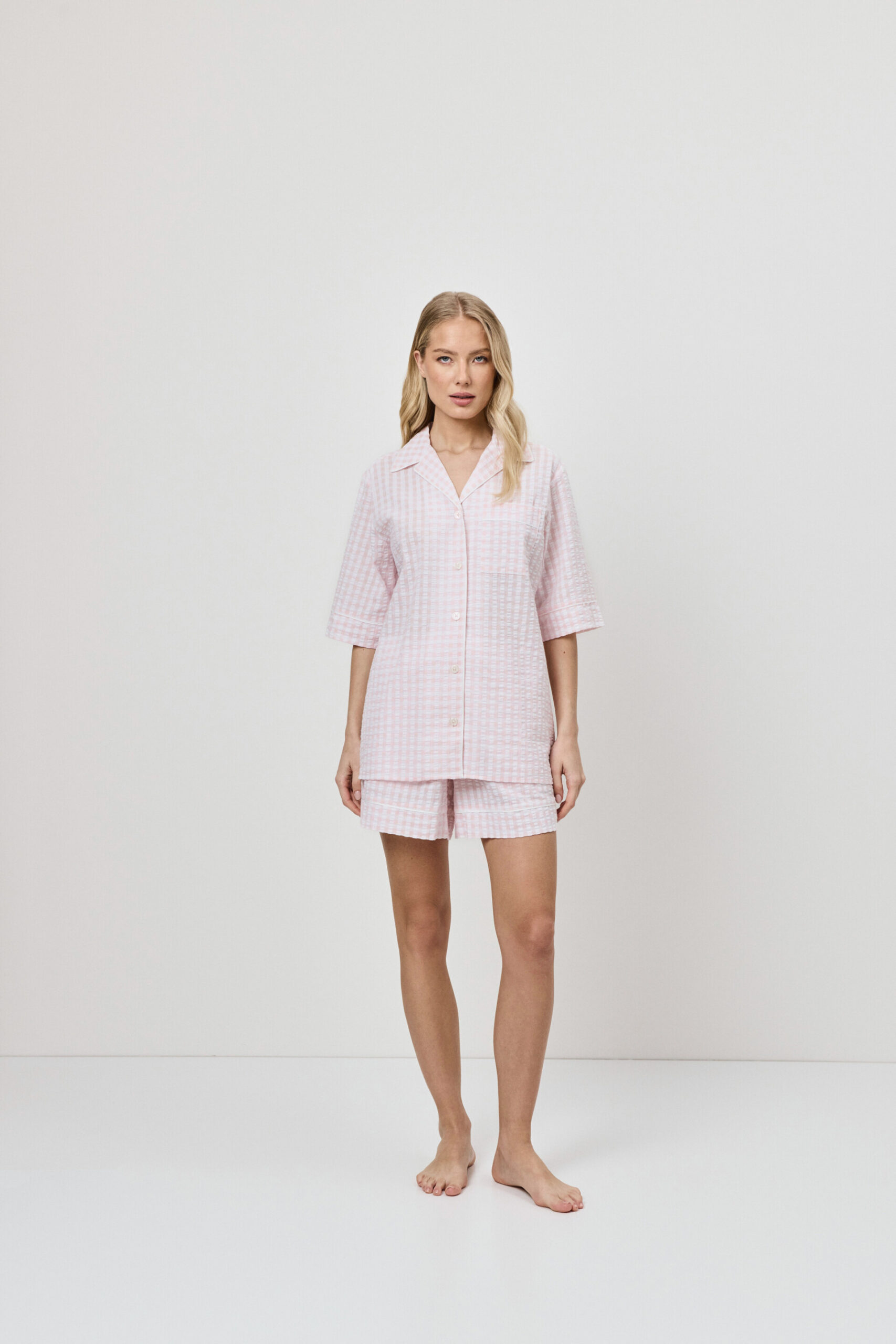 Ontdek ultiem comfort en stijl met de Julienne pyjama set van het premium merk Aruelle. Deze elegante set, bestaande uit een luchtige top en bijpassende shorts, is ontworpen voor vrouwen die houden van luxe en verfijning, zelfs tijdens hun ontspanningsmomenten. Het materiaal is van 100% katoen.