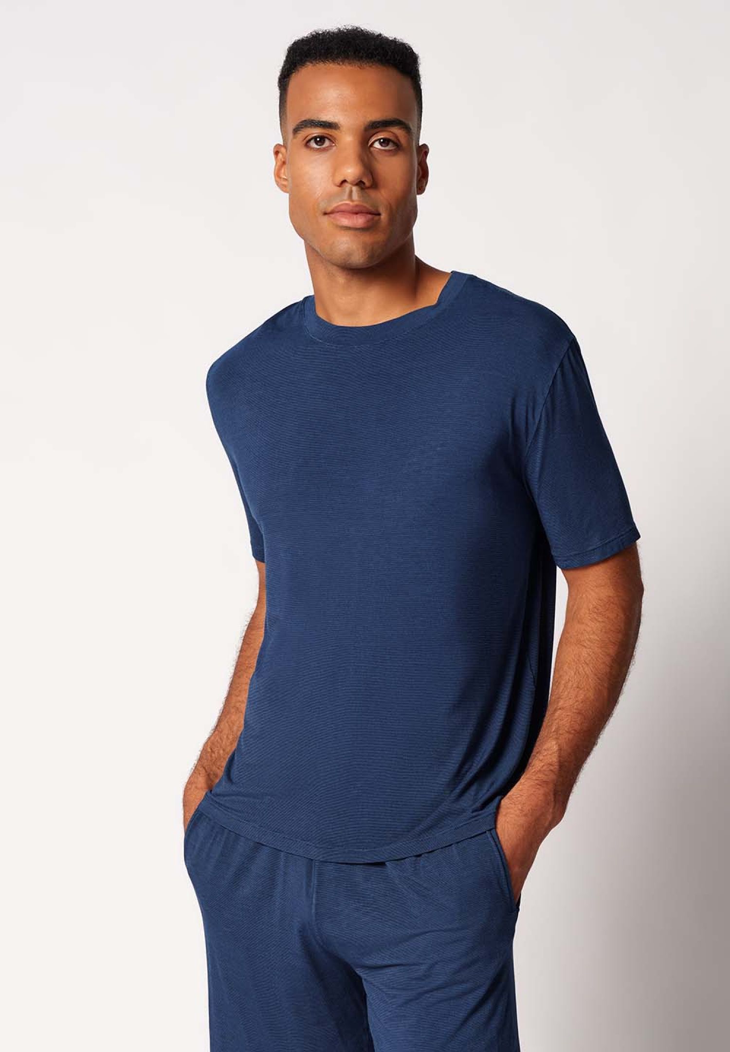 Ervaar ultiem comfort en stijl met deze luxe korte mouw shirt van Skiny. Uitgevoerd in een elegante kroonblauwe streep, is dit shirt perfect voor thuis of als stijlvolle loungewear. De hoogwaardige stof voelt zacht aan op de huid en biedt een perfecte pasvorm in maat XXL.