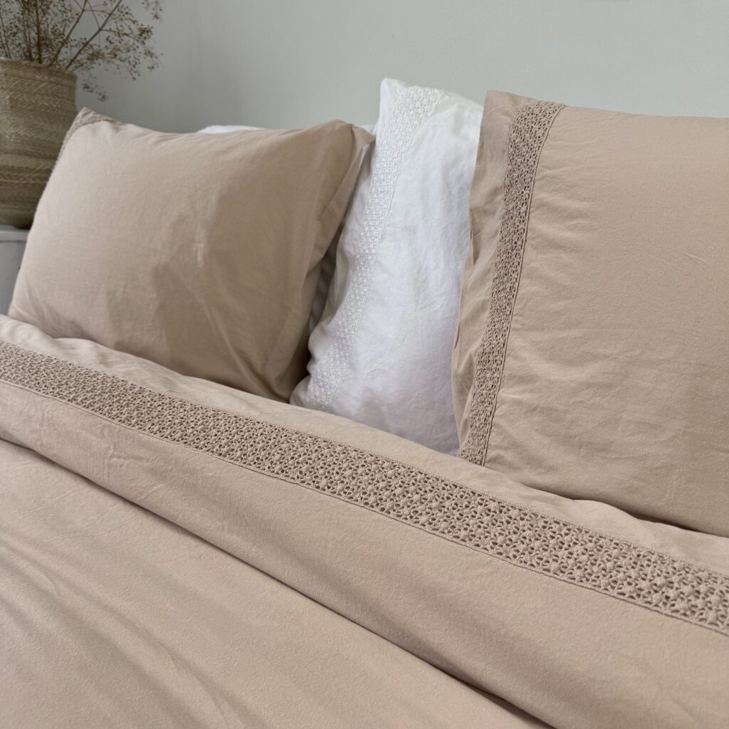 Haal het overtrek iets vochtig uit de wasmachine, even uit laten hangen en zo je bed op voor de beste look.