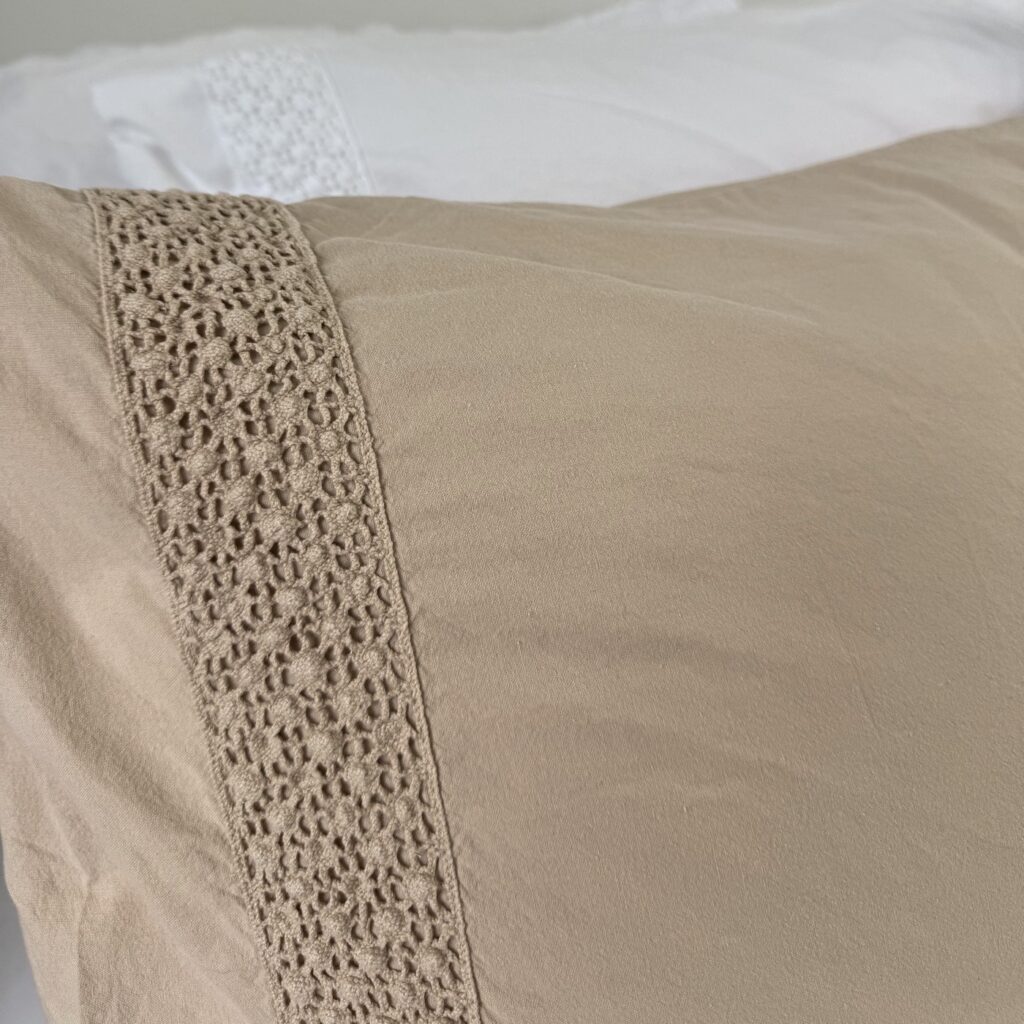 T.o.v. percal katoen heeft deze katoen soort een iets dikkere draad wat een zeer behaaglijk en zachte touch geeft.