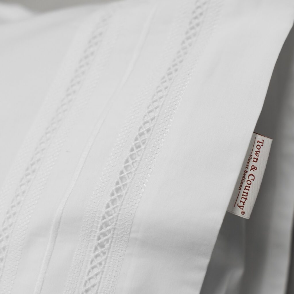 De achterzijde is glad percal katoen. Het sloop heeft dezelfde broderie aan de zijkant.